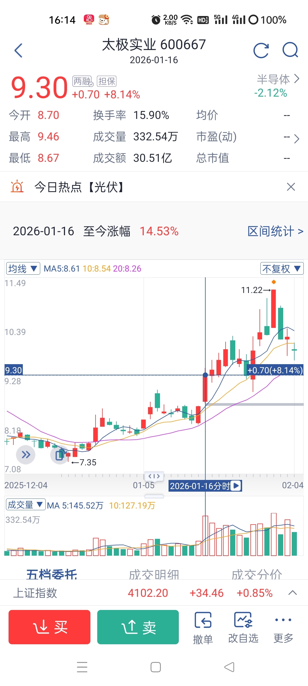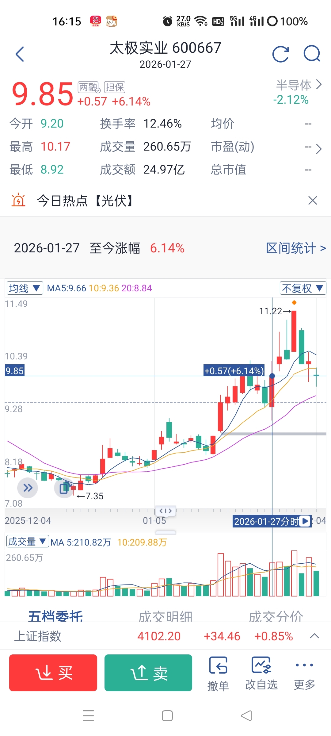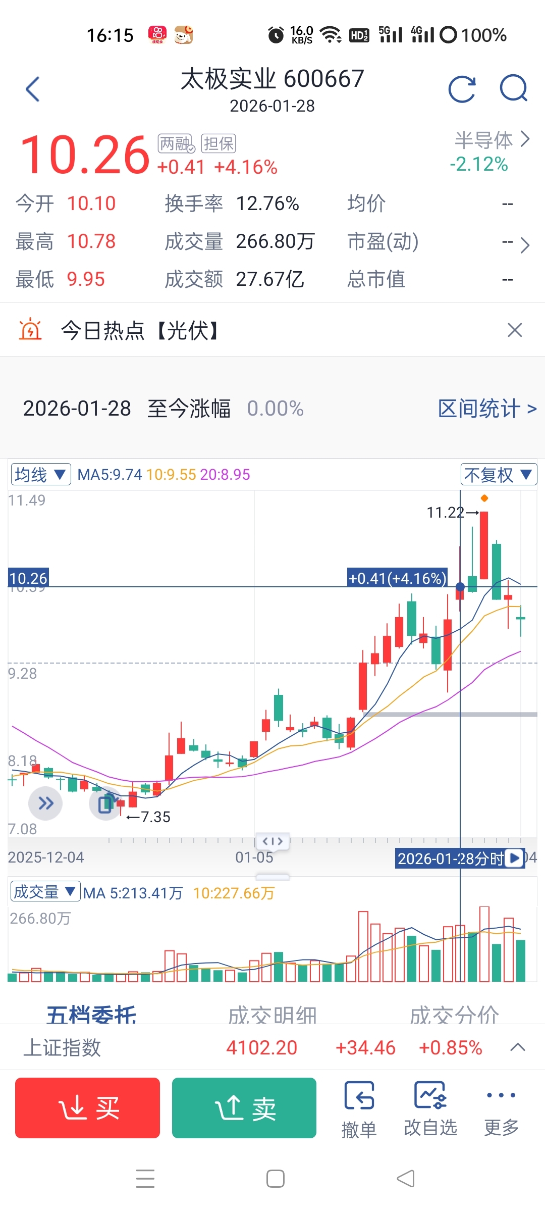 $太极实业(SH600667)$ 第一图收盘在9.30元,第二图低点到第一图收盘价低0.38元,第三图收盘价在10.26元,如此类推,减去0.38等于第四图应该在9.88元。而第四图低点实际是9.63元,而主力却收盘在了9.85元,这说明什么?9.88减去9.63差了两毛五,也就是0.38+0.25=0.63元?也就是说,距离拉大了,就像像皮筋,拉得越低,射得越高?在我的推算里,今天的最低点应该是在9.88元,这个主力今天是换人了吗?是故意吓我一个人,还是自己要启动了?