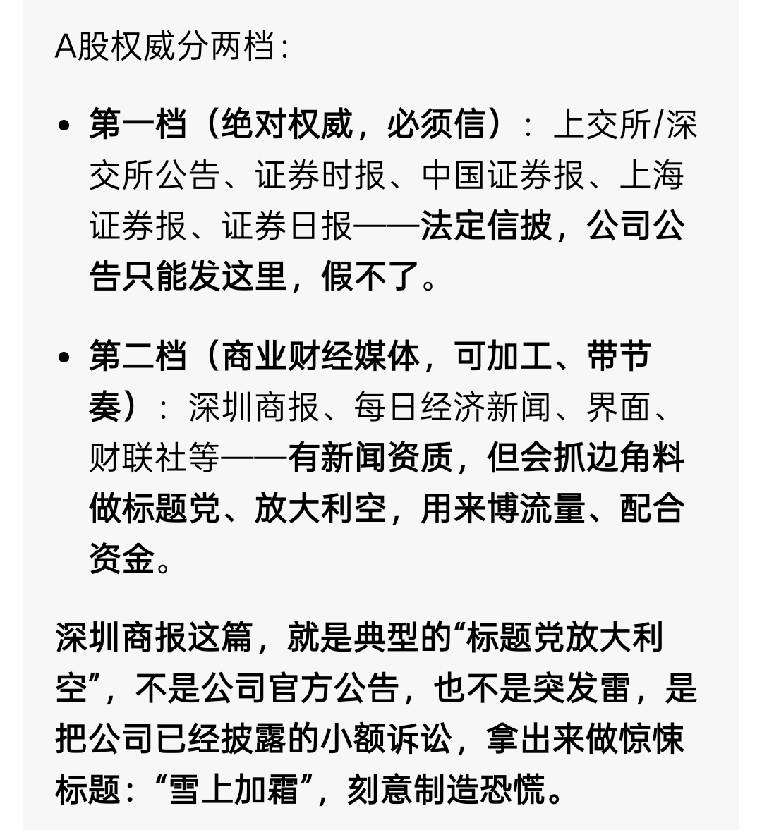 虽然消息面是真事,但文章主观臆断很明显往制造利空去的言论,这合同纠纷不是今天突发的,而是冷饭热炒可以加工处理完发出来的,意图也很明显了,放在平时没有大利好对冲,市场情绪冰点,那肯定是雪上加霜大家估计就会恐慌踩踏,但在利好buff基础上去制造利空,就有点可笑了,地方媒体活不下去了,为了点钱什么都干,上头要打击的也就是这类媒体,以小作文为生的异类