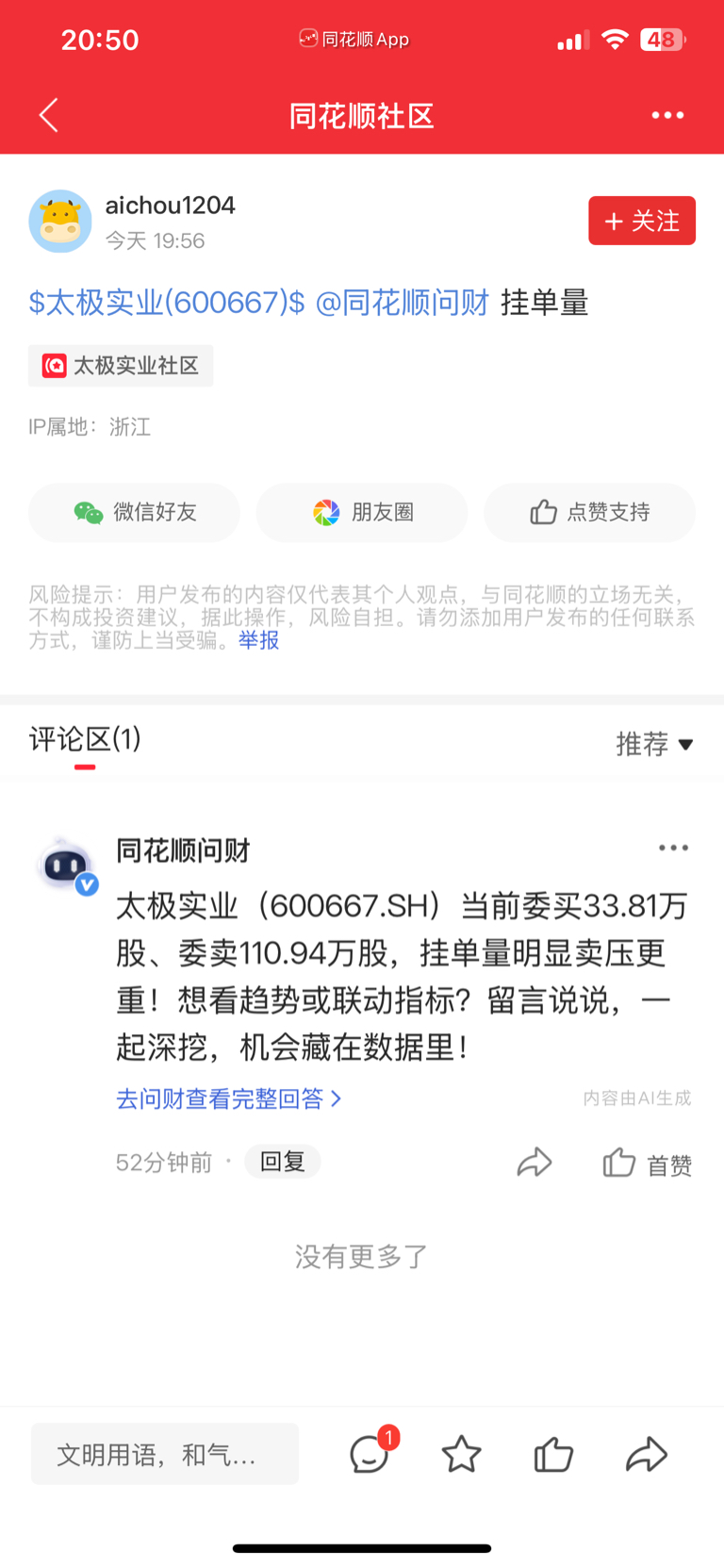温馨提示: 1.根据《证券法》规定,禁止编造、传播虚假信息或者误导性信息,扰乱证券市场;2.用户在本社区发表的所有资料、言论等仅代表个人观点,与本网站立场无关,不对您构成任何投资建议。用户应基于自己的独立判断,自行决定证券投资并承担相应风险。《东方财富社区管理规定》