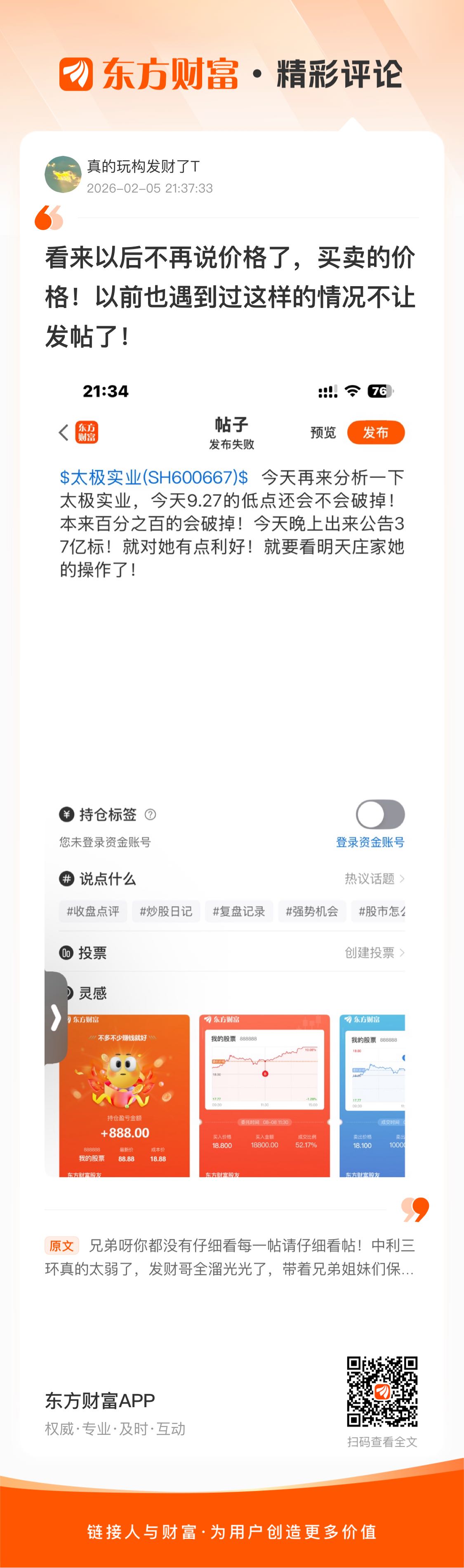 温馨提示: 1.根据《证券法》规定,禁止编造、传播虚假信息或者误导性信息,扰乱证券市场;2.用户在本社区发表的所有资料、言论等仅代表个人观点,与本网站立场无关,不对您构成任何投资建议。用户应基于自己的独立判断,自行决定证券投资并承担相应风险。《东方财富社区管理规定》