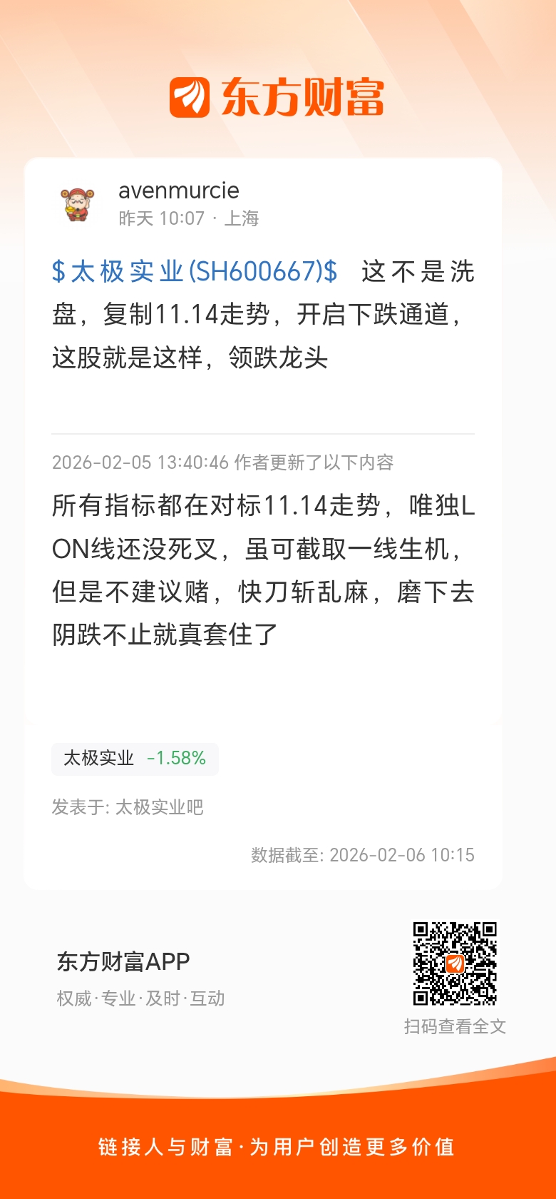 $太极实业(SH600667)$  这不是洗盘,复制11.14走势,开启下跌通道,这股就是这样,领跌龙头