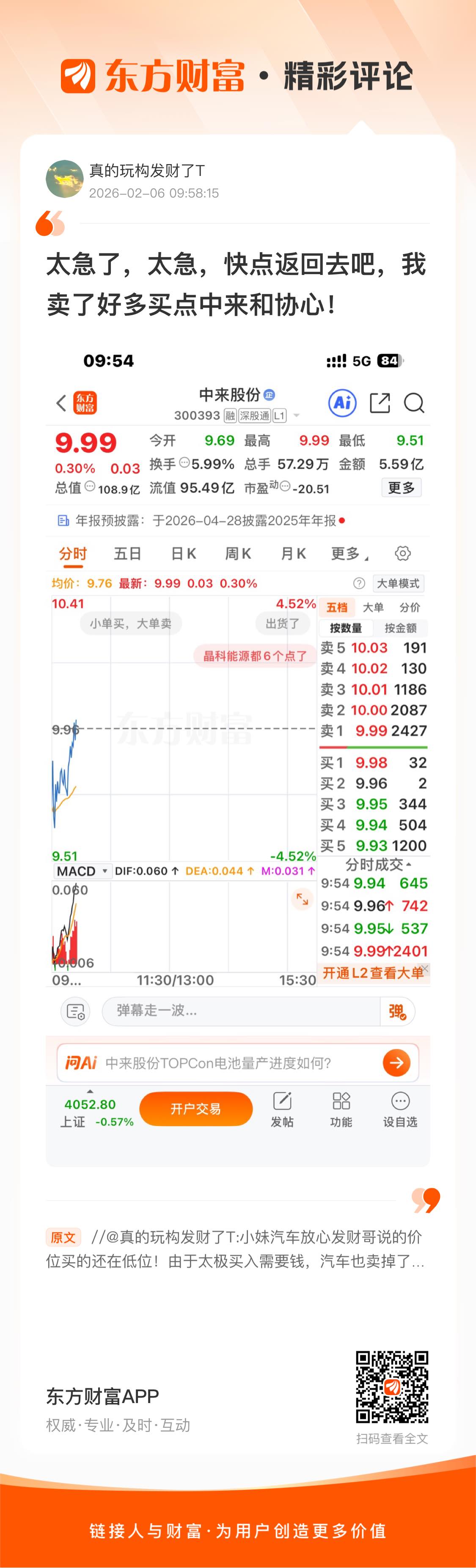 温馨提示: 1.根据《证券法》规定,禁止编造、传播虚假信息或者误导性信息,扰乱证券市场;2.用户在本社区发表的所有资料、言论等仅代表个人观点,与本网站立场无关,不对您构成任何投资建议。用户应基于自己的独立判断,自行决定证券投资并承担相应风险。《东方财富社区管理规定》