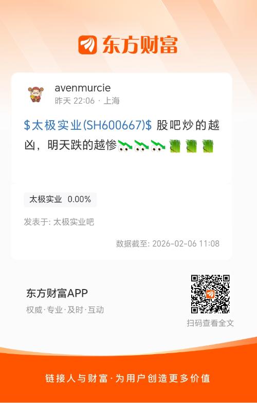 $太极实业(SH600667)$ 股吧炒的越凶,明天跌的越惨