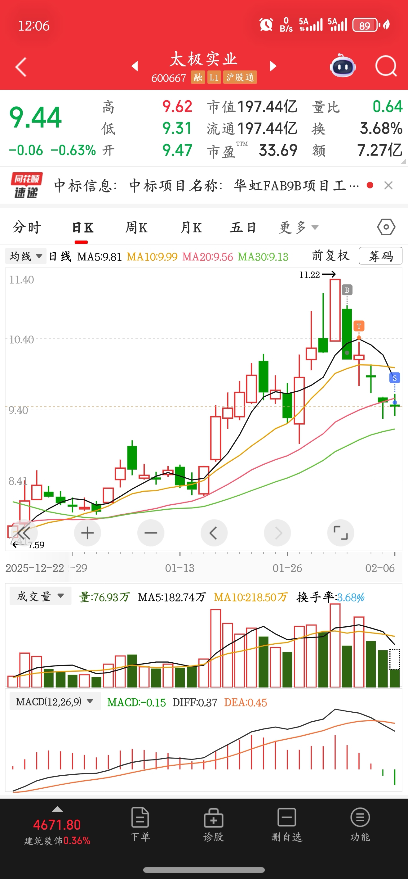 $太极实业(SH600667)$ 昨天就说了今天能只跌两个点都算它是个人。国信和东财都认亏出局。
