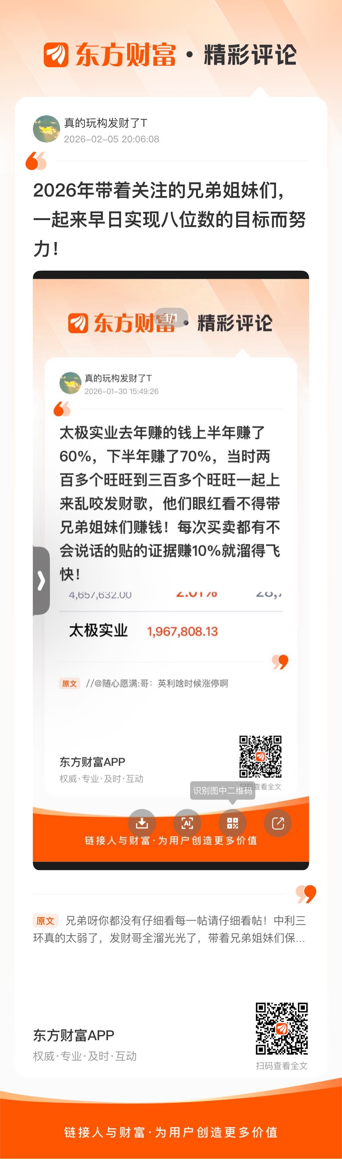 温馨提示: 1.根据《证券法》规定,禁止编造、传播虚假信息或者误导性信息,扰乱证券市场;2.用户在本社区发表的所有资料、言论等仅代表个人观点,与本网站立场无关,不对您构成任何投资建议。用户应基于自己的独立判断,自行决定证券投资并承担相应风险。《东方财富社区管理规定》