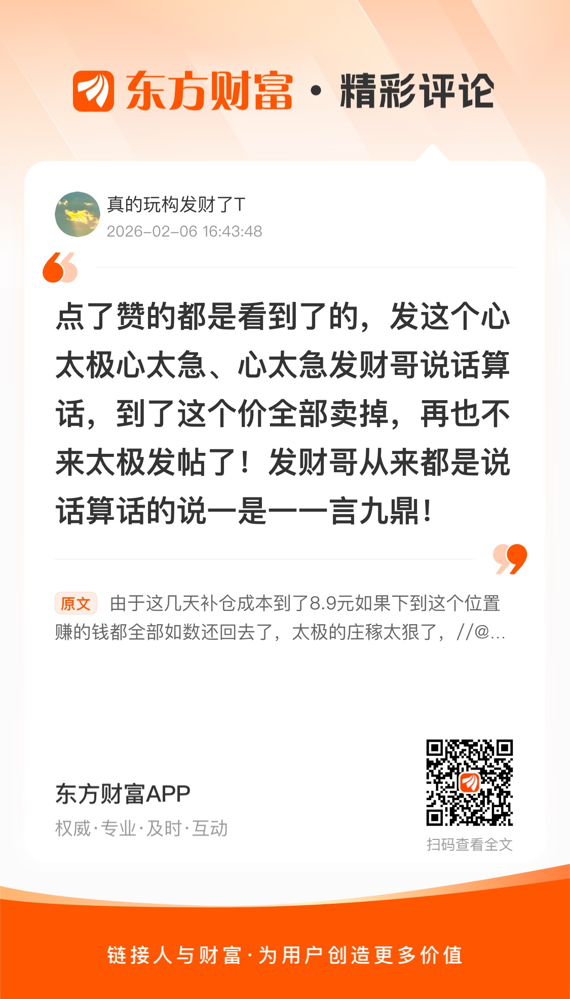 温馨提示: 1.根据《证券法》规定,禁止编造、传播虚假信息或者误导性信息,扰乱证券市场;2.用户在本社区发表的所有资料、言论等仅代表个人观点,与本网站立场无关,不对您构成任何投资建议。用户应基于自己的独立判断,自行决定证券投资并承担相应风险。《东方财富社区管理规定》
