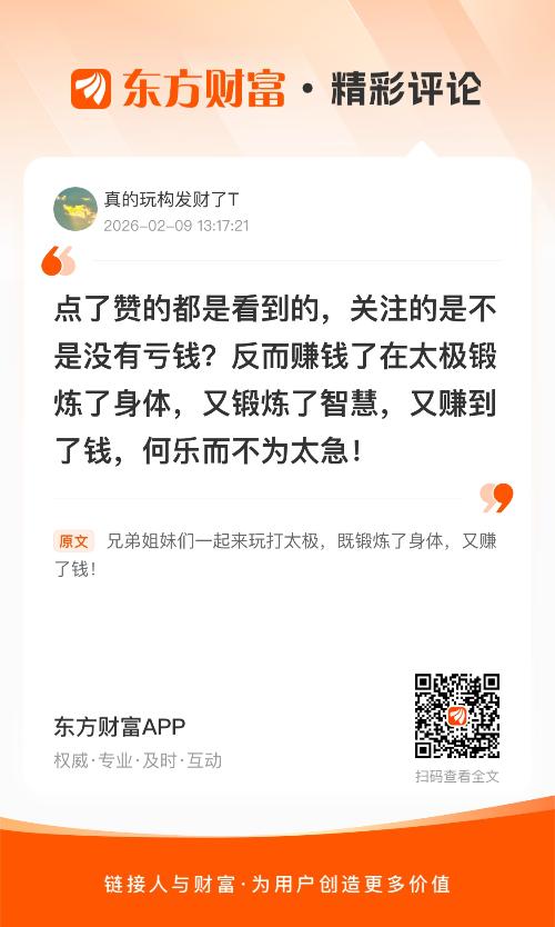 //@真的玩构发财了T : 点了赞的都是看到的,关注的是不是没有亏钱?反而赚钱了在太极锻炼了身体,又锻炼了智慧,又赚到了钱,何乐而不为太急!