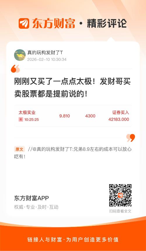//@真的玩构发财了T : 刚刚又买了一点点太极!发财哥买卖股票都是提前说的!