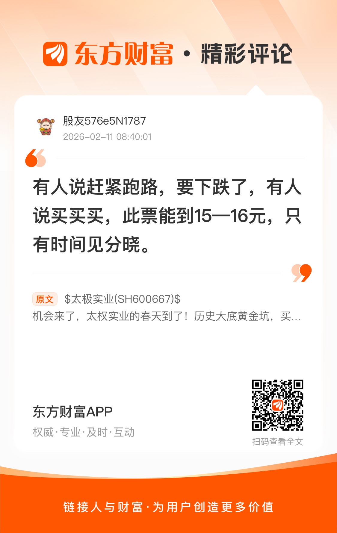 温馨提示: 1.根据《证券法》规定,禁止编造、传播虚假信息或者误导性信息,扰乱证券市场;2.用户在本社区发表的所有资料、言论等仅代表个人观点,与本网站立场无关,不对您构成任何投资建议。用户应基于自己的独立判断,自行决定证券投资并承担相应风险。《东方财富社区管理规定》