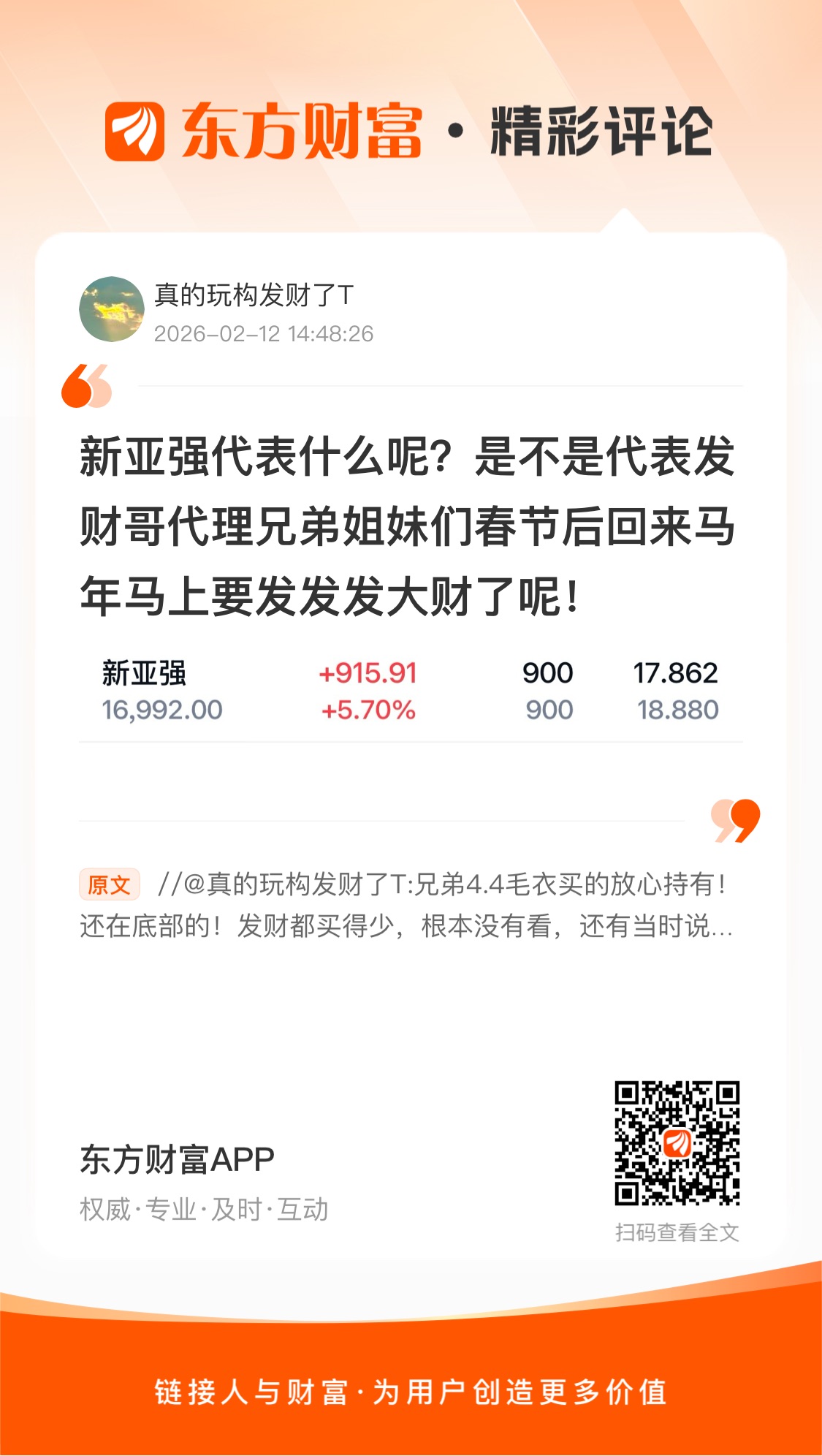 //@真的玩构发财了T : 兄弟4.4毛衣买的放心持有!还在底部的!发财都买得少,根本没有看,还有当时说了的另外一只也没得少就900股新亚强也没怎么看,因为这段时间一直下行还是绿的!刚刚你问我才看了一看,兄弟你不问差点把他忘掉了,没想到还涨停了!从亏几百元到赚了几百块!今天还给了一个小小小小的红包!