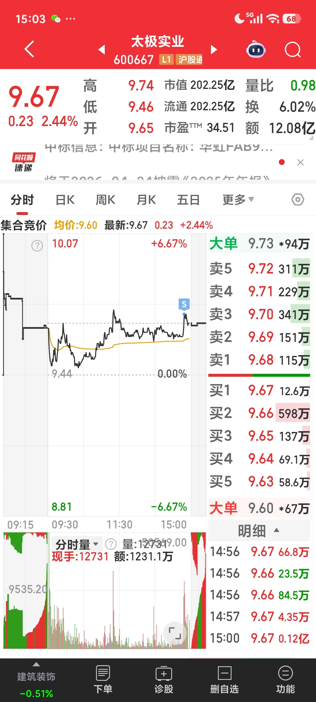 $太极实业(SH600667)$ 拉尾盘?你随意