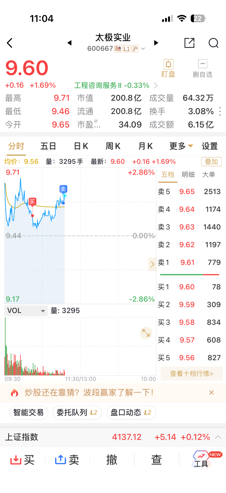 $太极实业(SH600667)$ 咋样 不贪,啥时候跌 啥时候补,拉高就卖