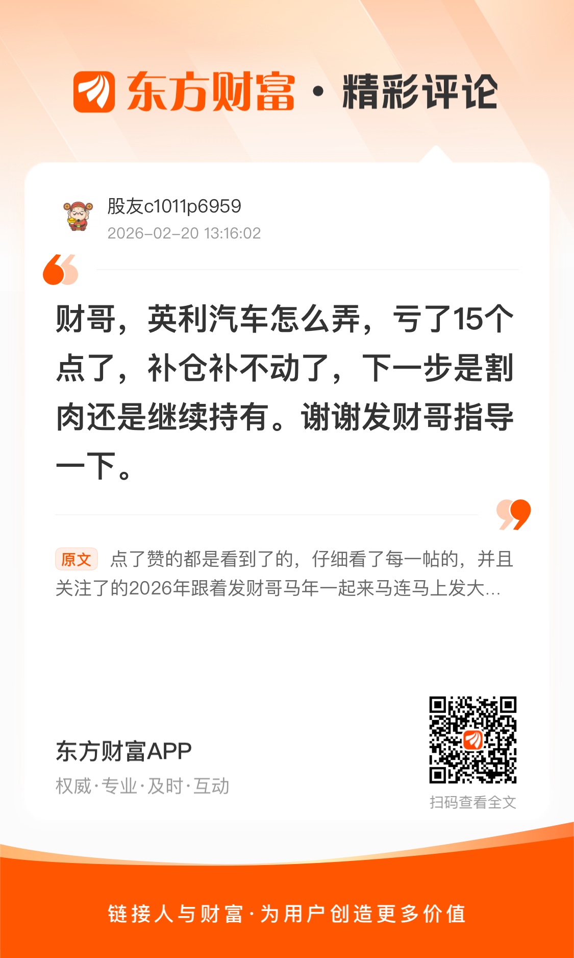 温馨提示: 1.根据《证券法》规定,禁止编造、传播虚假信息或者误导性信息,扰乱证券市场;2.用户在本社区发表的所有资料、言论等仅代表个人观点,与本网站立场无关,不对您构成任何投资建议。用户应基于自己的独立判断,自行决定证券投资并承担相应风险。《东方财富社区管理规定》