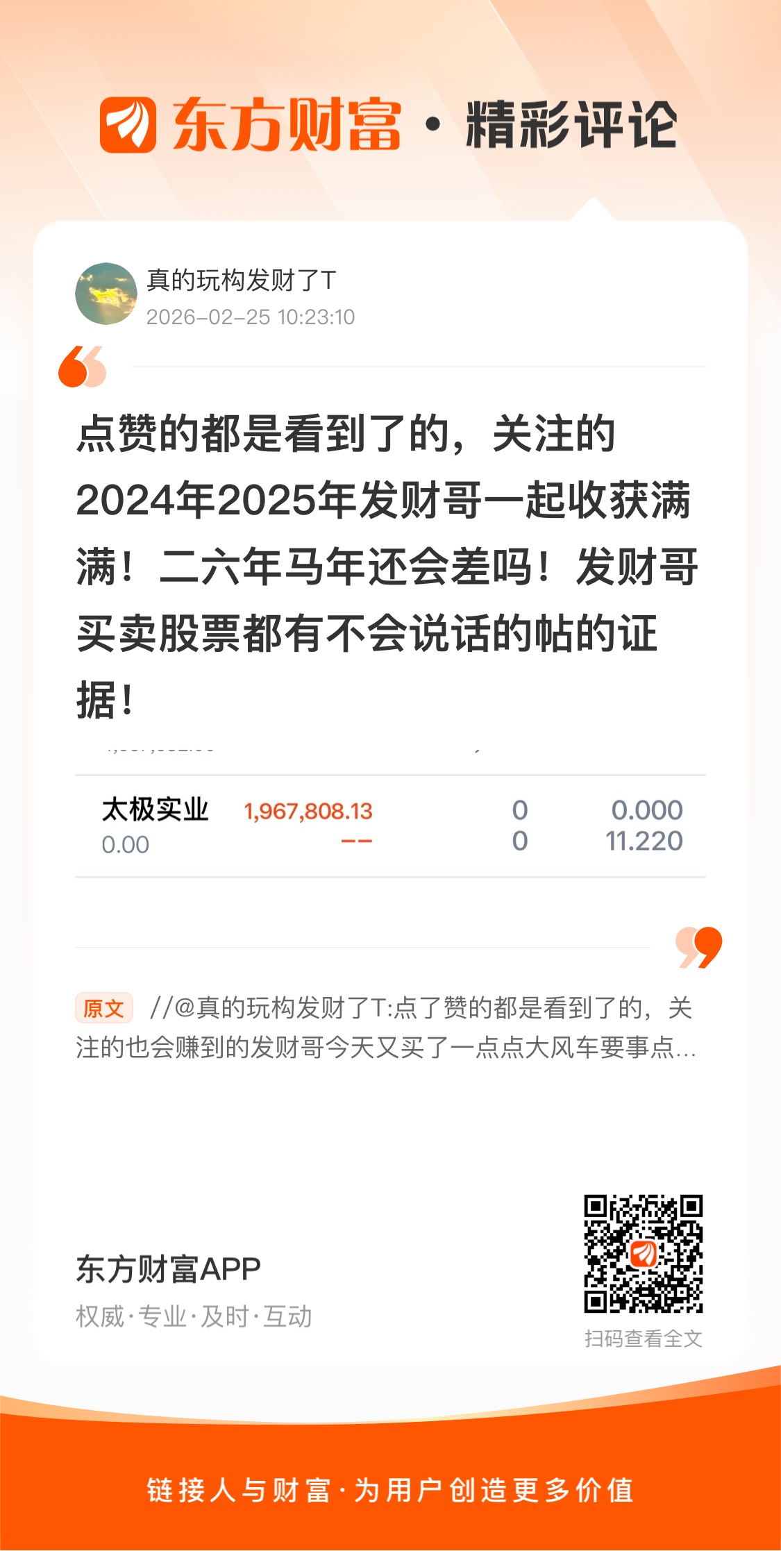 温馨提示: 1.根据《证券法》规定,禁止编造、传播虚假信息或者误导性信息,扰乱证券市场;2.用户在本社区发表的所有资料、言论等仅代表个人观点,与本网站立场无关,不对您构成任何投资建议。用户应基于自己的独立判断,自行决定证券投资并承担相应风险。《东方财富社区管理规定》