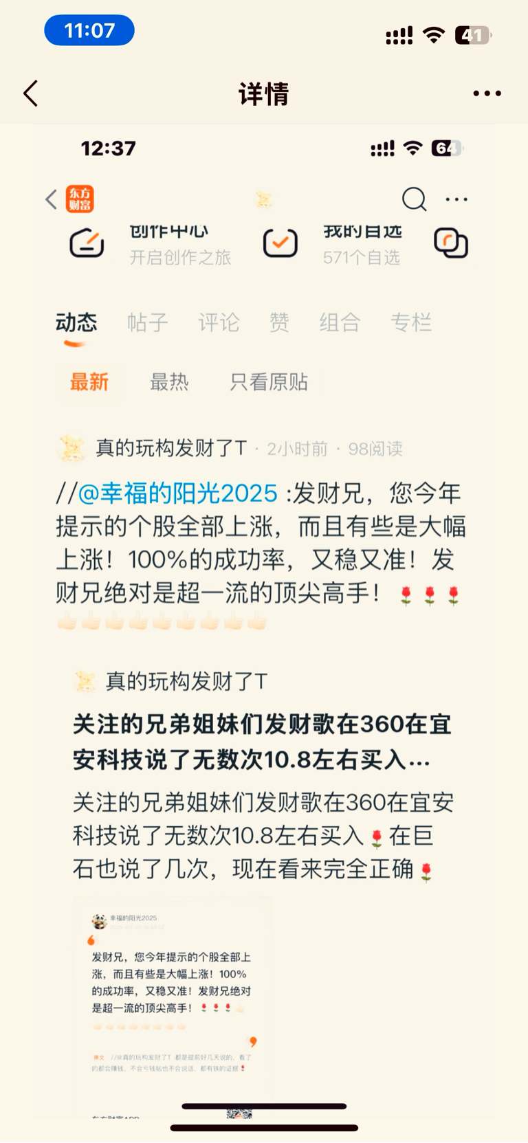 点了赞的都是看到了的关注的,并且仔细看了每一天的每一帖的4.5左右跟着发财哥一起