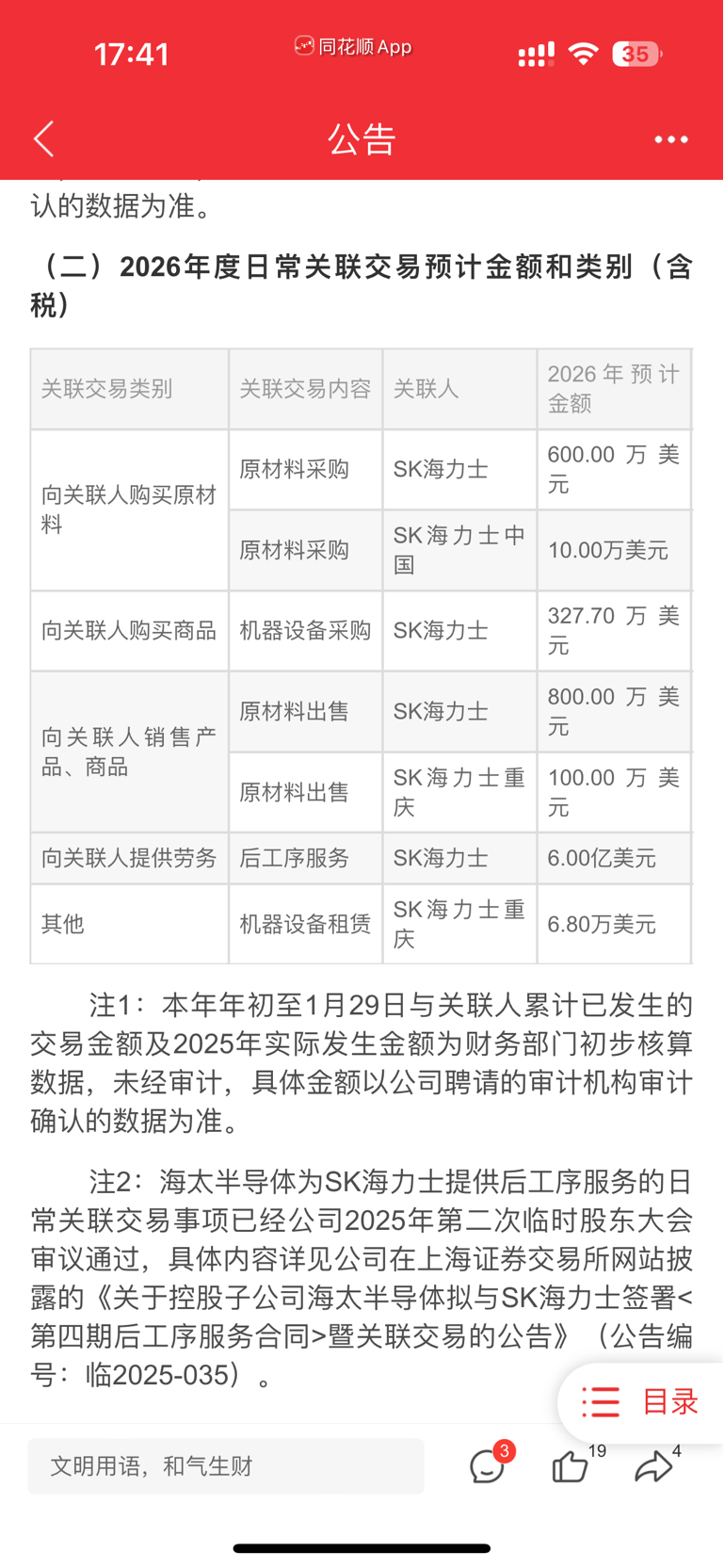 公告通过三个议案6亿美元是海太为SK海力士提供DRAM后工序服务(即封装测试)的