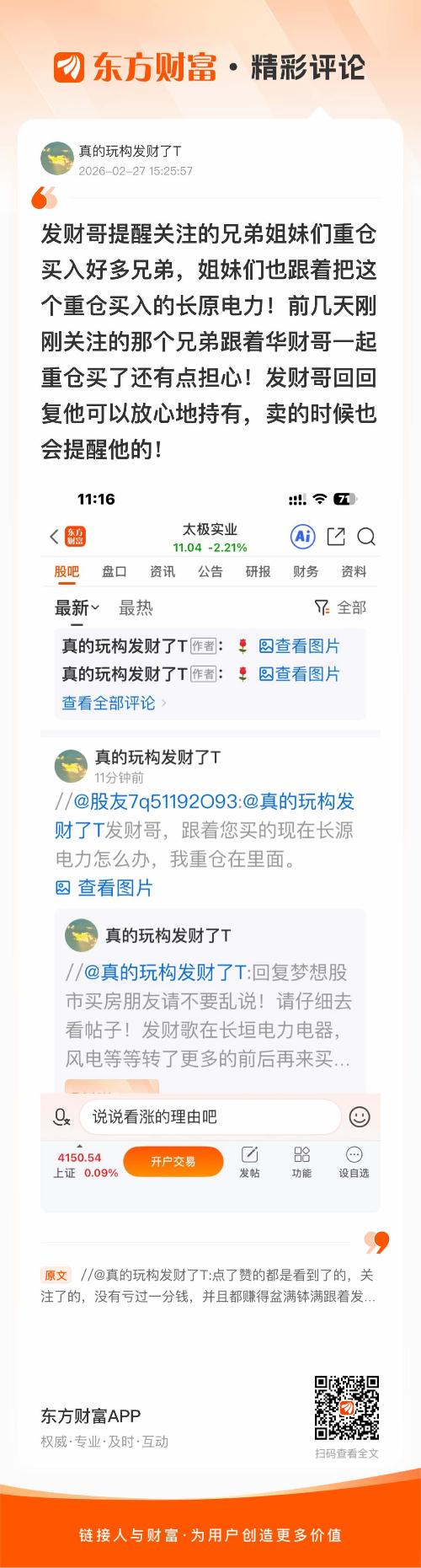 温馨提示: 1.根据《证券法》规定,禁止编造、传播虚假信息或者误导性信息,扰乱证券市场;2.用户在本社区发表的所有资料、言论等仅代表个人观点,与本网站立场无关,不对您构成任何投资建议。用户应基于自己的独立判断,自行决定证券投资并承担相应风险。《东方财富社区管理规定》