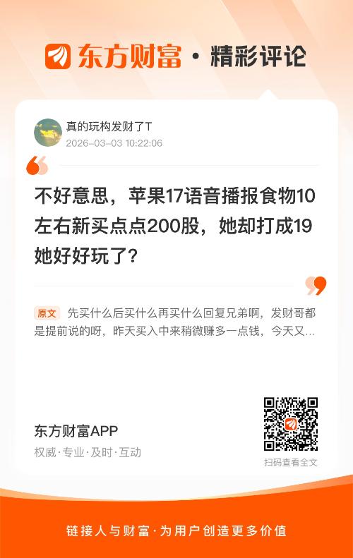 温馨提示: 1.根据《证券法》规定,禁止编造、传播虚假信息或者误导性信息,扰乱证券市场;2.用户在本社区发表的所有资料、言论等仅代表个人观点,与本网站立场无关,不对您构成任何投资建议。用户应基于自己的独立判断,自行决定证券投资并承担相应风险。《东方财富社区管理规定》