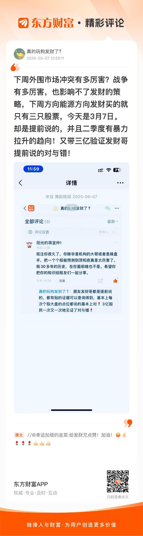 温馨提示: 1.根据《证券法》规定,禁止编造、传播虚假信息或者误导性信息,扰乱证券市场;2.用户在本社区发表的所有资料、言论等仅代表个人观点,与本网站立场无关,不对您构成任何投资建议。用户应基于自己的独立判断,自行决定证券投资并承担相应风险。《东方财富社区管理规定》