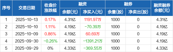 尖峰集团:融资净买入1191.97万元,融资余额4.31亿元(10-13)