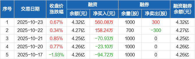尖峰集团:融资净买入560.08万元,融资余额4.32亿元(10-23)