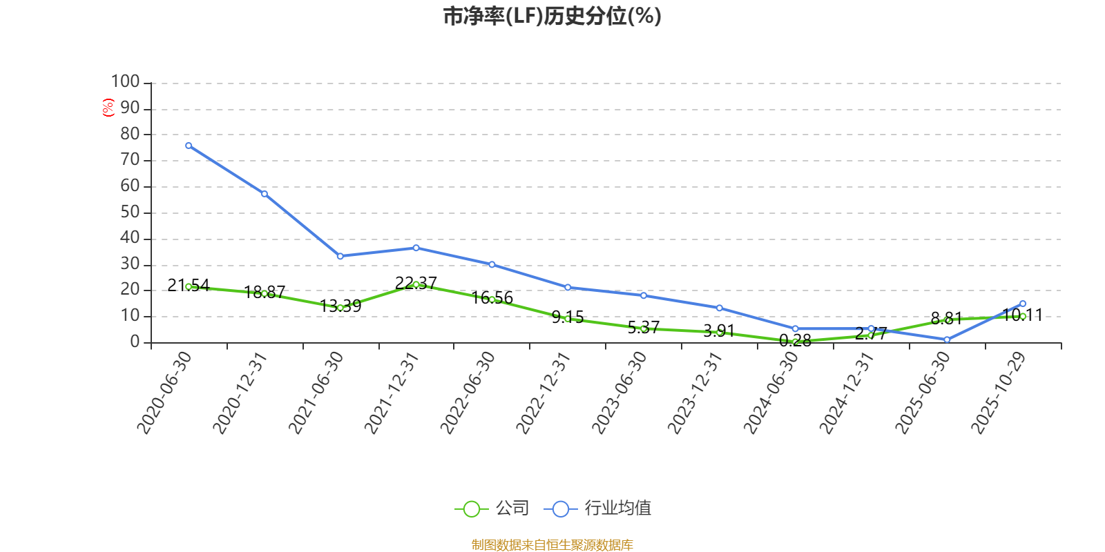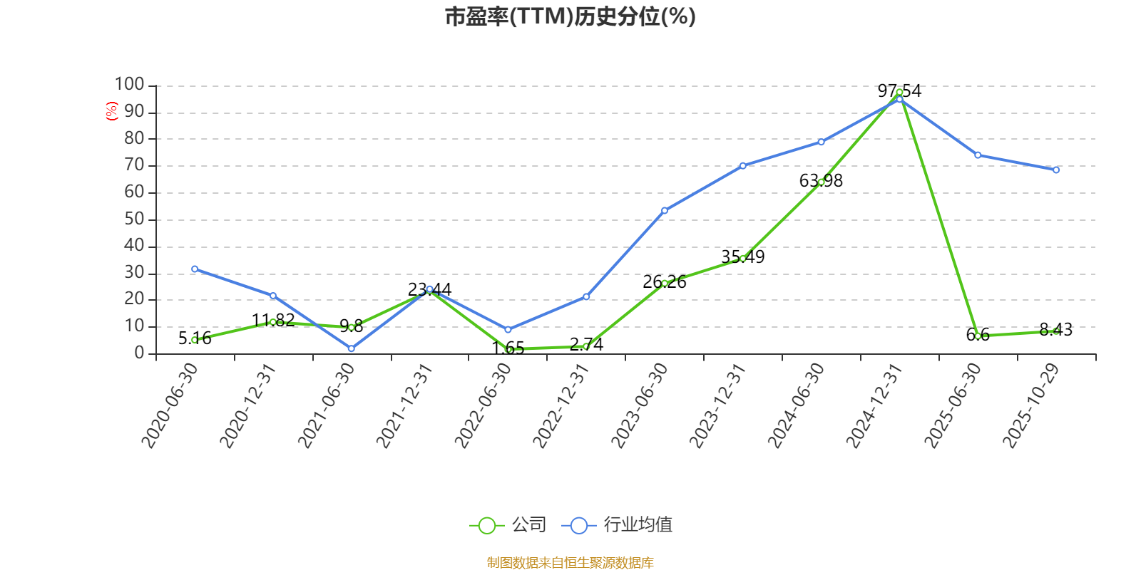 市盈率、市净率为负时,不显示当期分位数,会导致折线图中断。