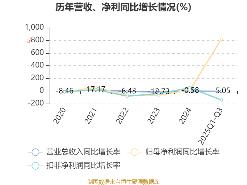 负债重大变化方面,截至2025年三季度末,公司短期借款较上年末增加265.23%,占公司总资产比重上升6.2个百分点;一年内到期的非流动负债较上年末减少96.66%,占公司总资产比重下降5.03个百分点;应付票据及应付账款较上年末减少18.12%,占公司总资产比重下降1.9个百分点;其他应付款(含利息和股利)较上年末减少13.87%,占公司总资产比重下降0.64个百分点。