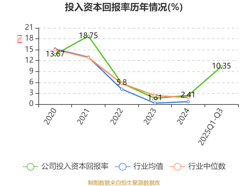 盈利能力方面, 2025年前三季度公司加权平均净资产收益率为11.85%,同比上升10.46个百分点。公司2025年前三季度投入资本回报率为10.35%,较上年同期上升8.81个百分点。