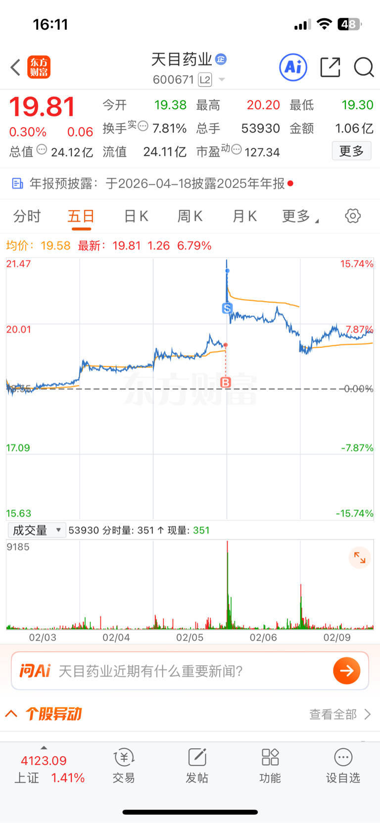 $天目药业(SH600671)$ 回来看看大家,上周五不涨停就不是好东西