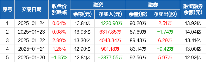 东阳光:融资净偿还1220.9万元,融资余额13.81亿元(01-24)