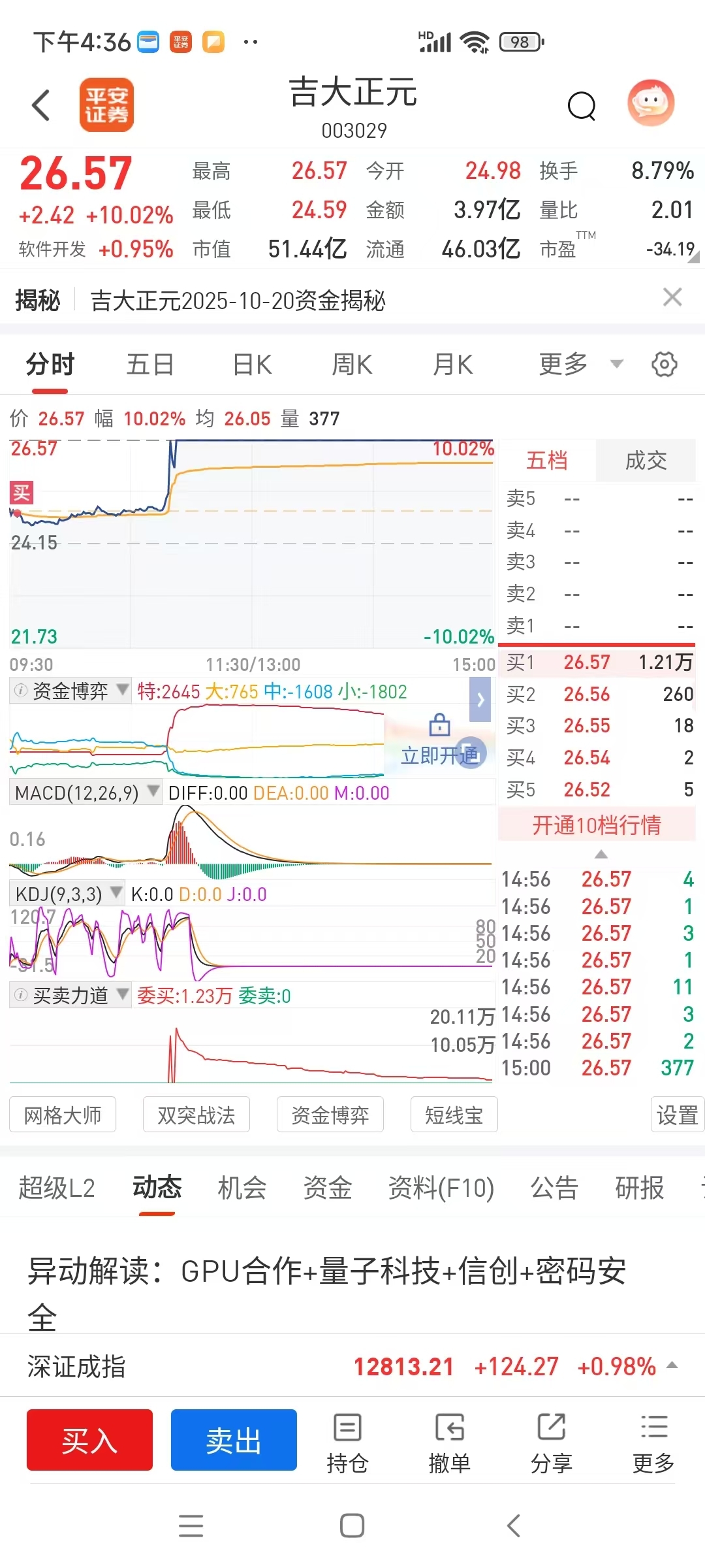 我今天建仓进场,手里有大明天进场的东信和平也有今天进场的吉大正元,东阳光,无论业