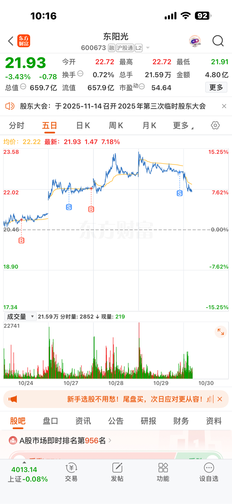 $东阳光(SH600673)$ 他哥的,昨天出掉,卖了这个,长城没卖,一样吃面