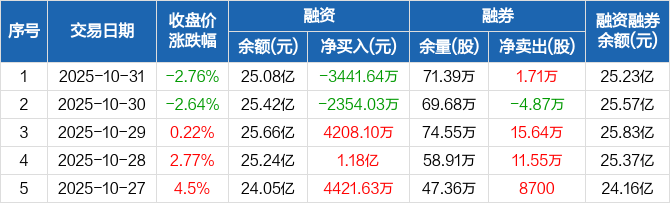 东阳光:融资净偿还3441.64万元,融资余额25.08亿元(10-31)