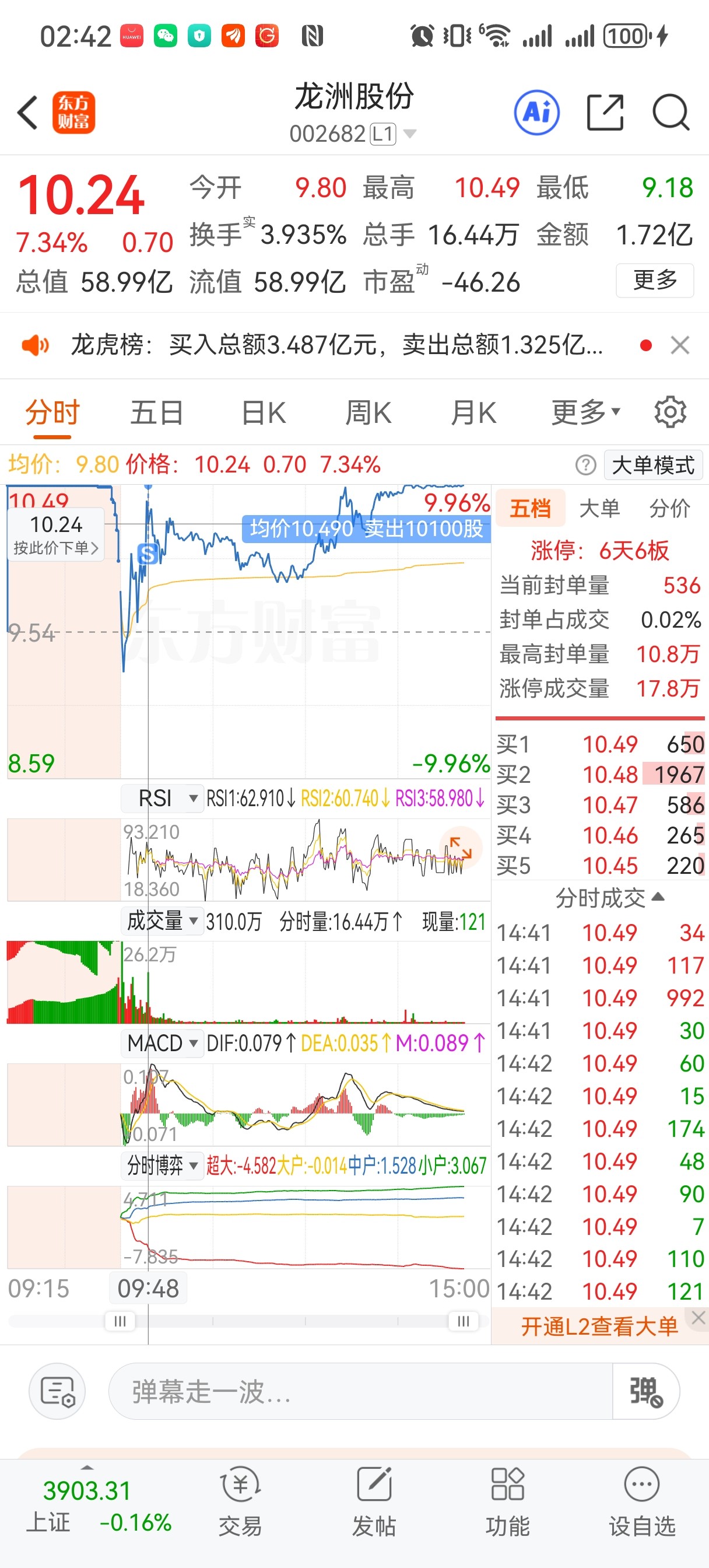 涨停卖出龙洲,22块多卖出厦门空港,郁闷的是挂单买惠泉啤酒没抢到,只好买东阳光了