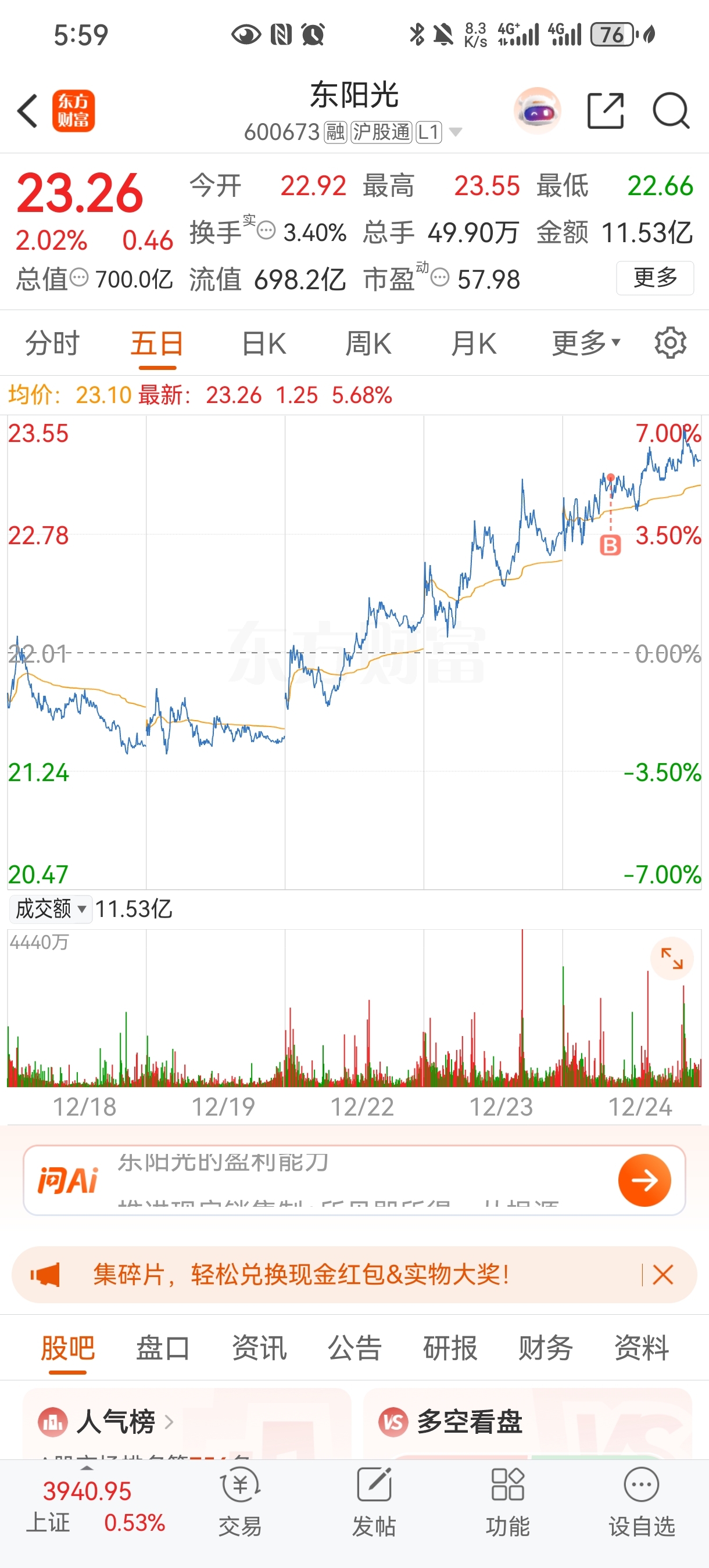 $东阳光(SH600673)$ 今天买在山顶了,100股