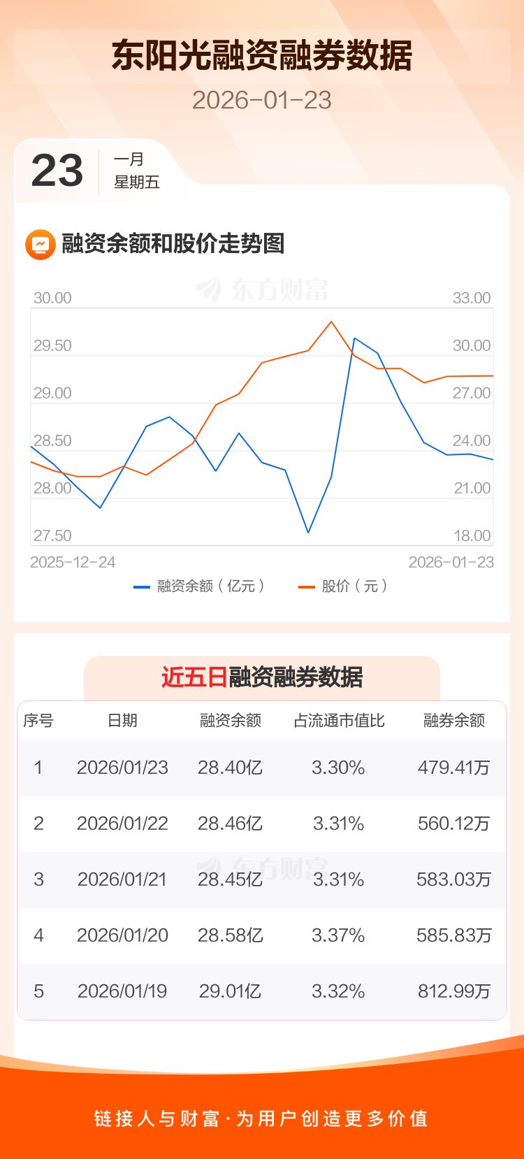 交易所最新数据显示,东阳光于2026年1月23日获融资买入1.01亿元,融资偿还1.07亿元,当日融资净偿还569.74万元。目前,该股融资余额28.40亿,占流通市值比例为3.30%。