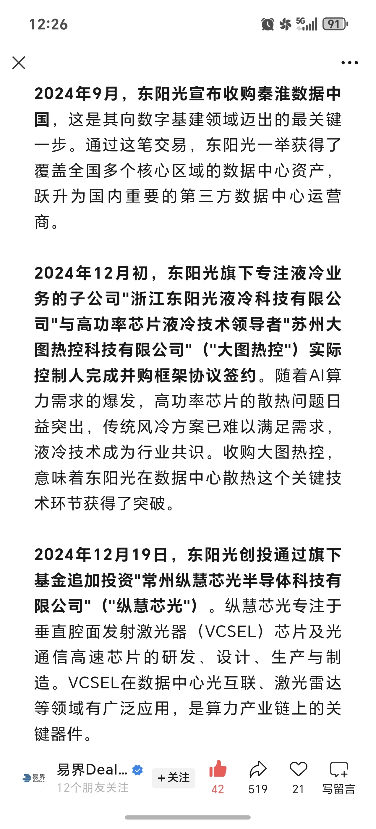 $东阳光(SH600673)$ 东阳光AI算力基础建设的布局