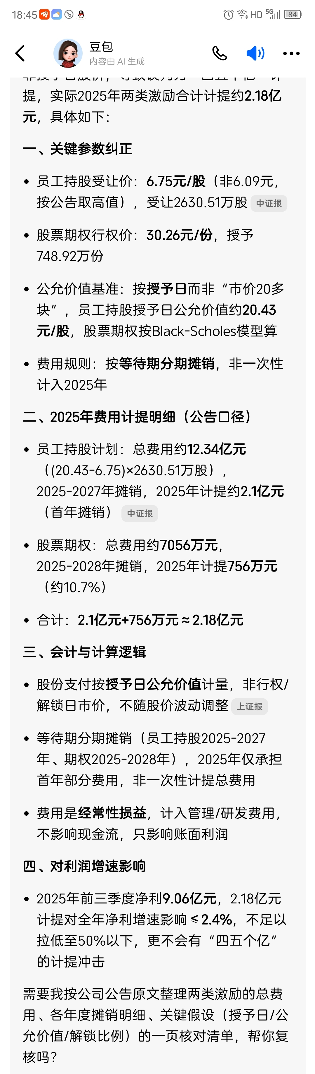 $东阳光(SH600673)$ 股权激励导致的计提按照豆包的计算计提约2.18亿。到现在还没有预增公告不知道什么原因,有电话吗,要不打个电话问问