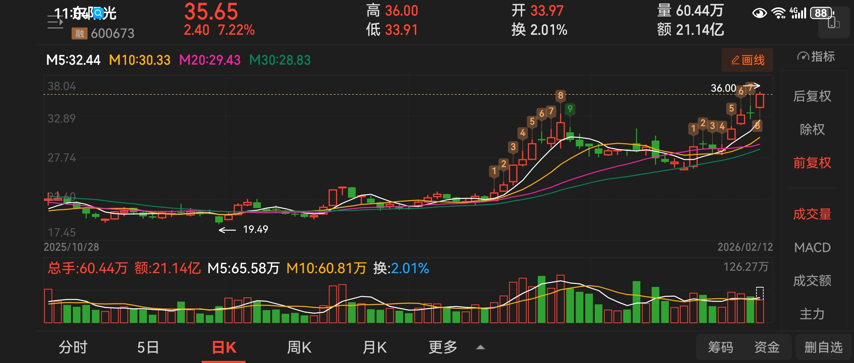 $东阳光(SH600673)$ 昨日分享的东阳光,短线看三十六过不去就止盈先出来了!节后再做