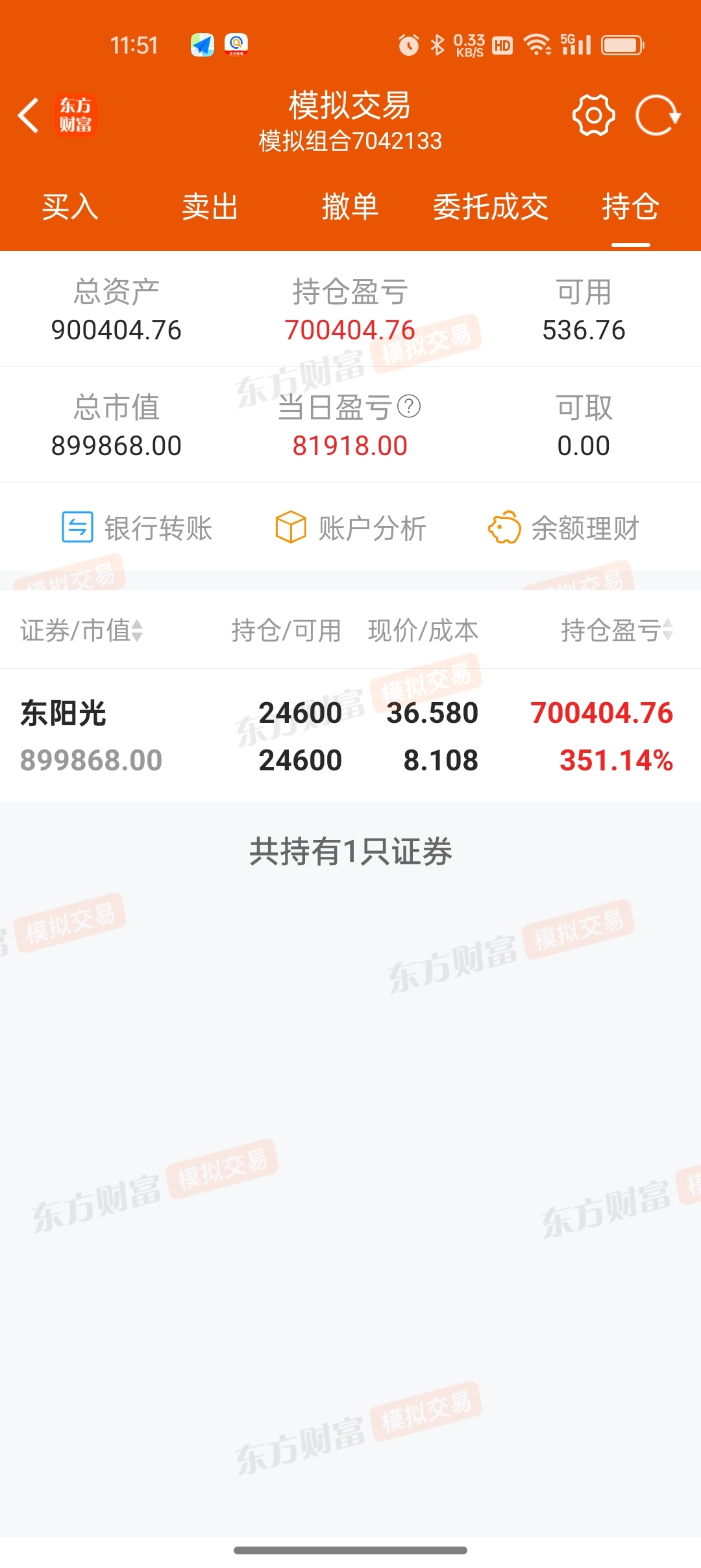 $东阳光(SH600673)$ 可惜只是模拟盘