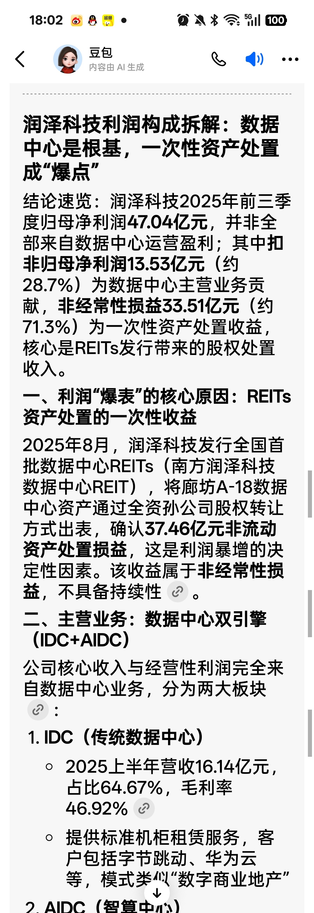 润泽科技目前的利润并非完全算力利润。