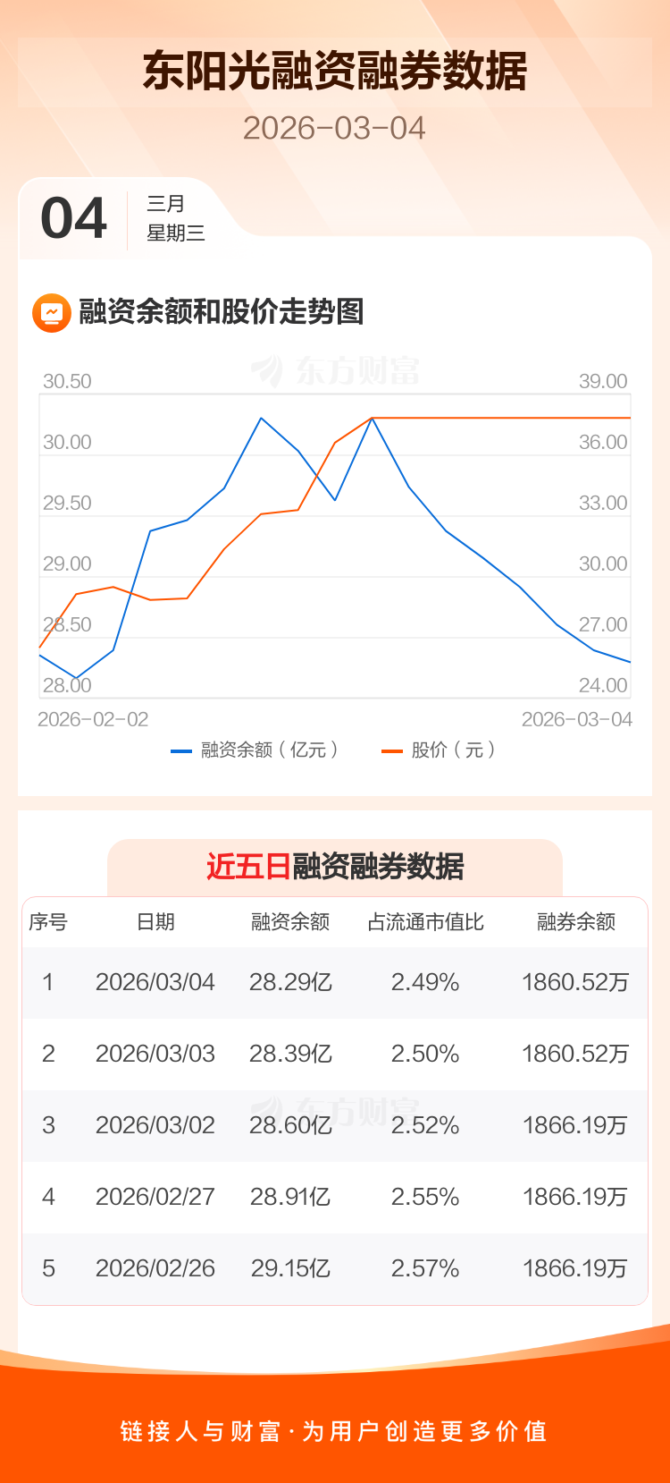 交易所最新数据显示,东阳光于2026年3月4日获融资买入0元,融资偿还1023.82万元,当日融资净偿还1023.82万元。目前,该股融资余额28.29亿,占流通市值比例为2.49%。