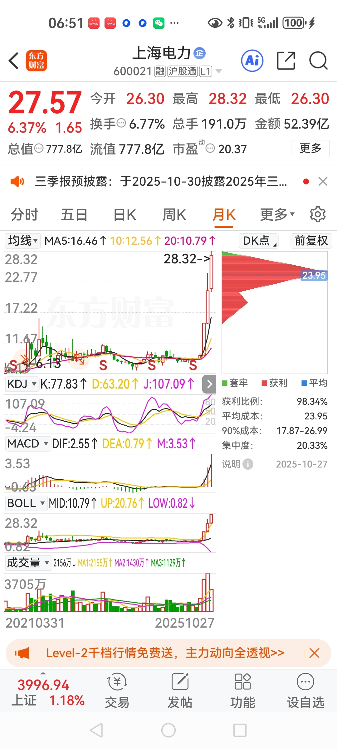 今年上海电力的市值从200多亿涨到了昨天的777亿!川投能源的市值从1000多亿