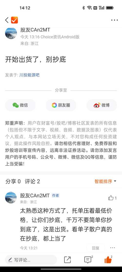 温馨提示: 1.根据《证券法》规定,禁止编造、传播虚假信息或者误导性信息,扰乱证券市场;2.用户在本社区发表的所有资料、言论等仅代表个人观点,与本网站立场无关,不对您构成任何投资建议。用户应基于自己的独立判断,自行决定证券投资并承担相应风险。《东方财富社区管理规定》