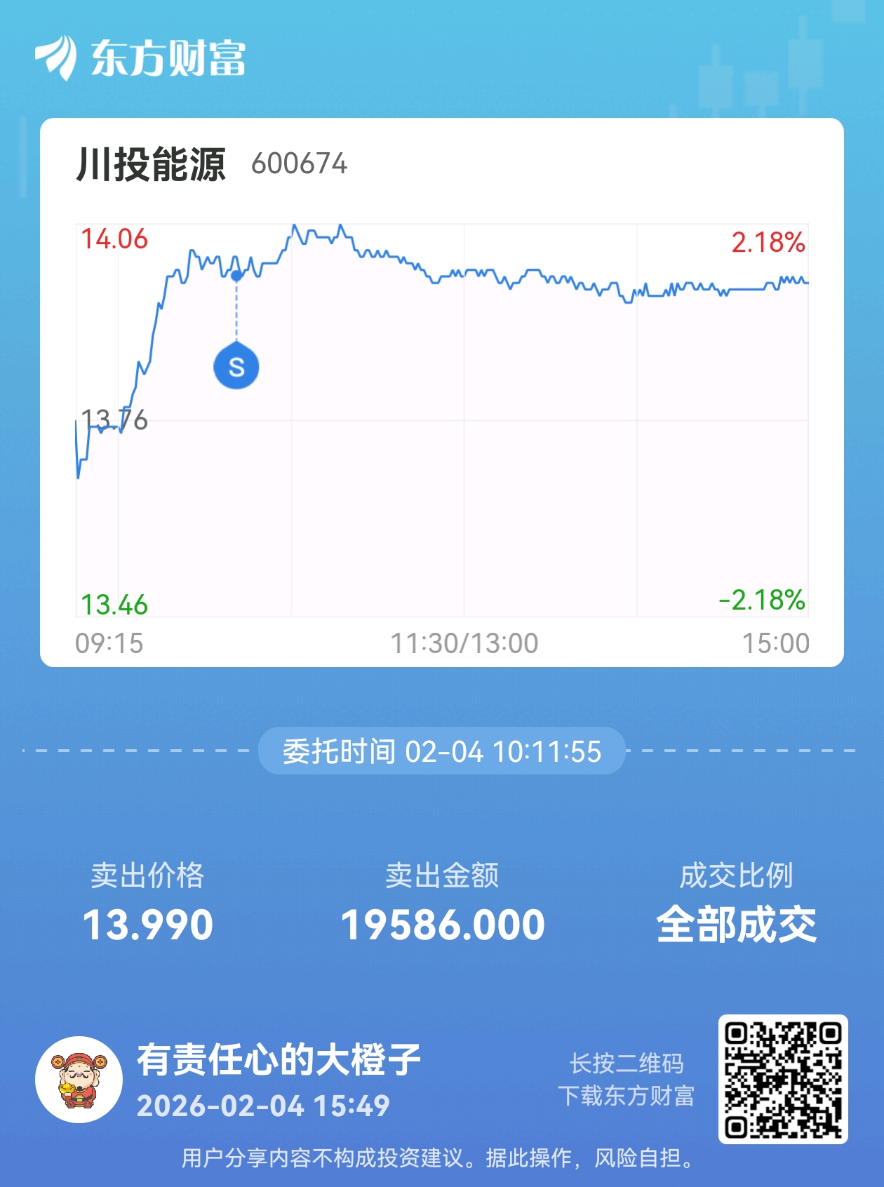 $川投能源(SH600674)$ 今天再次卖出20000,可以拉升了吗?
