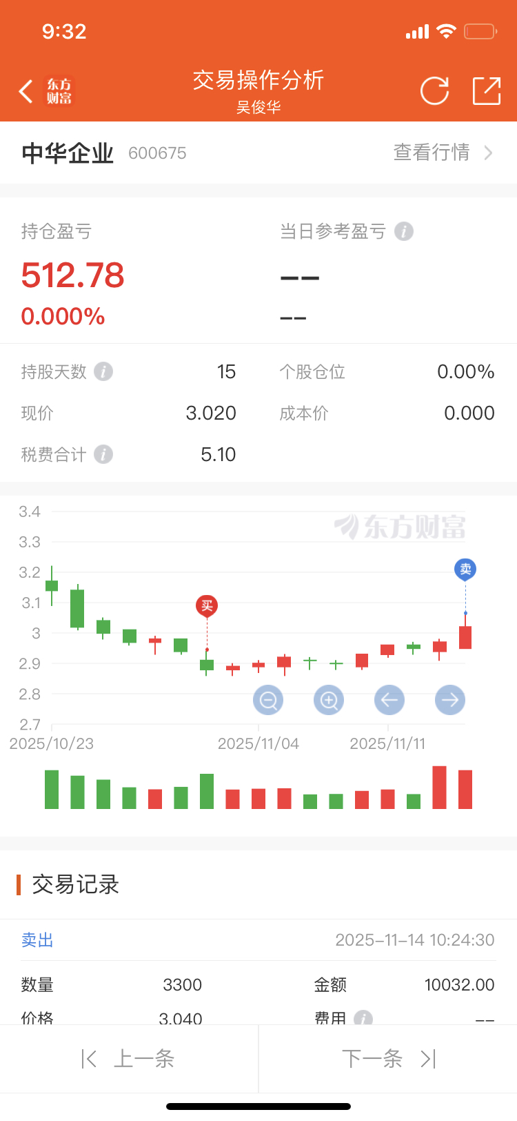 $中华企业(SH600675)$ 业绩亏损,不敢拿久,小赚500元出局