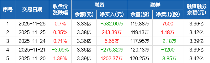 中华企业:融资净偿还582万元,融资余额3.33亿元(11-26)
