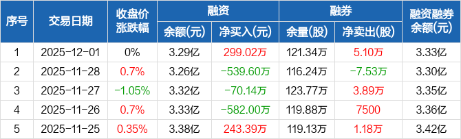 中华企业:融资净买入299.02万元,融资余额3.29亿元(12-01)