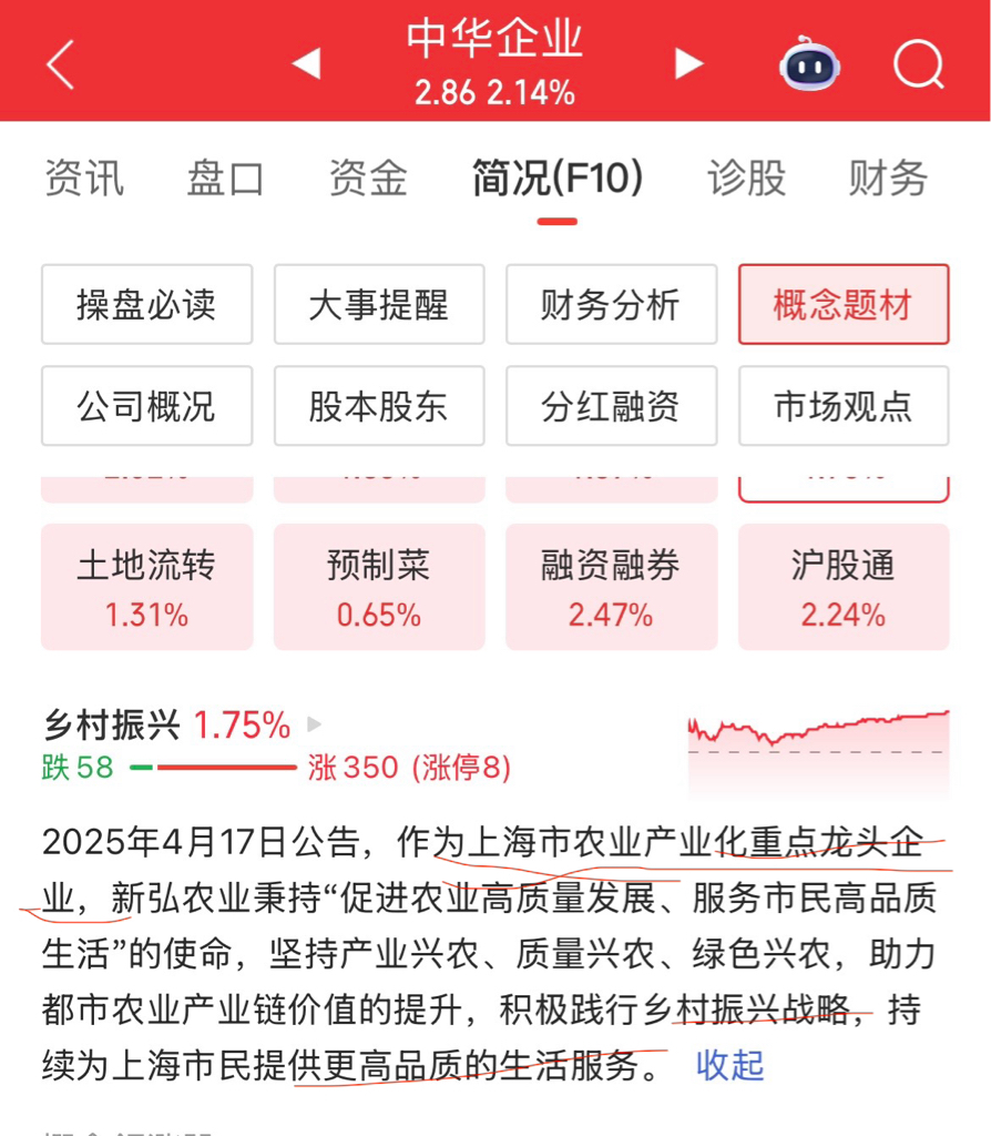 $中华企业(SH600675)$ 农业一号文件下发!中华企业作为上海市农业产业化重点龙头企业,新弘农业秉持“促进农业高质量发展、服务市民高品质生活”的使命,坚持产业兴农、质量兴农、绿色兴农,助力都市农业产业链价值的提升,积极践行乡村振兴战略!