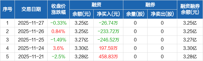 交运股份:连续3日融资净偿还累计506.98万元(11-27)